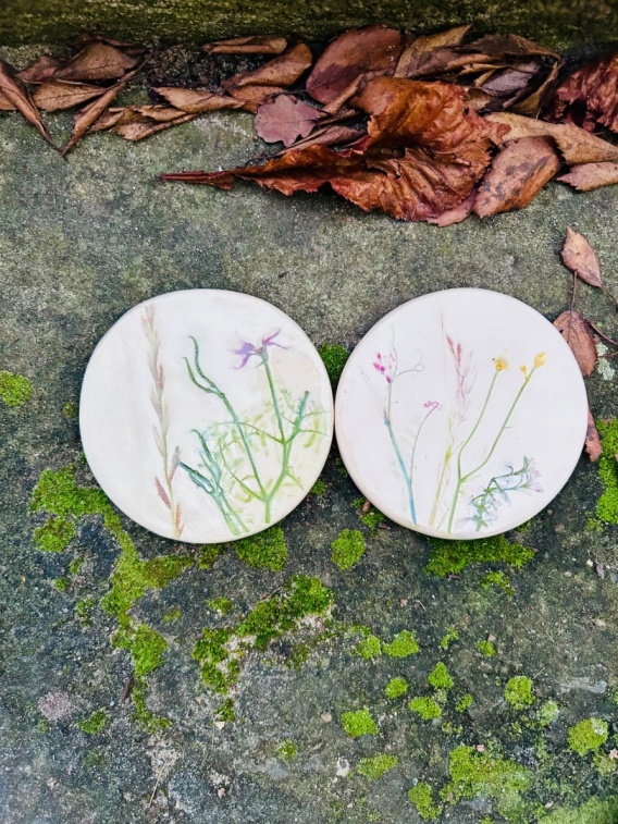 odciskami polnych roślin.